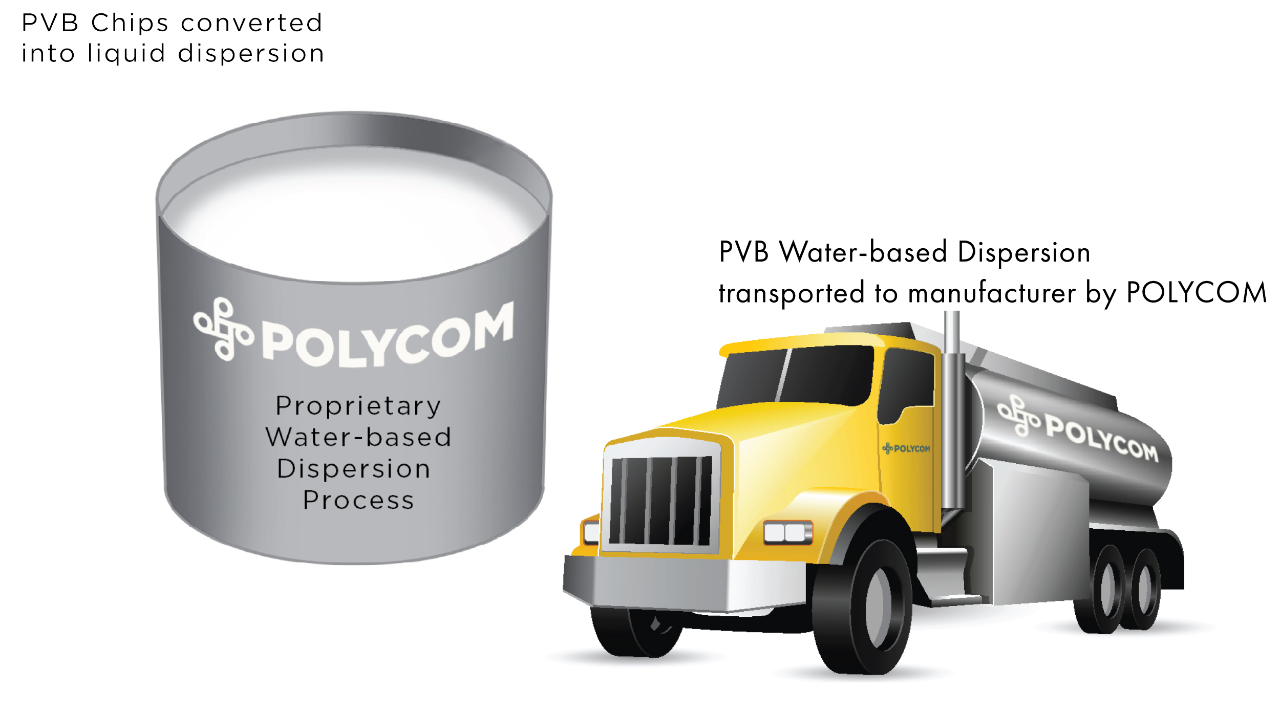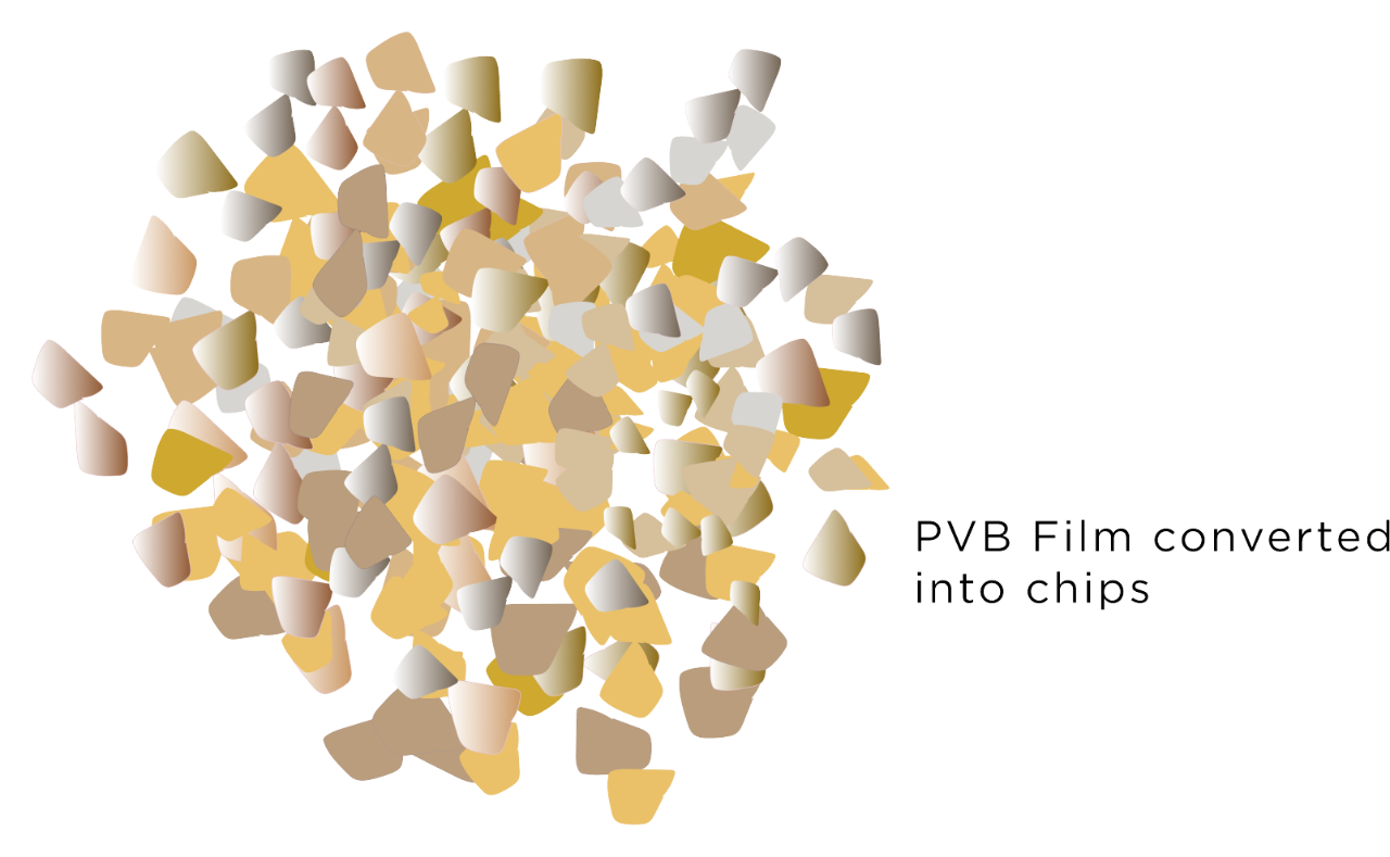 This PVB film is separated from the broken laminated glass and is recycled into chips or pellets that can be reclaimed, redirecting it from landfills.